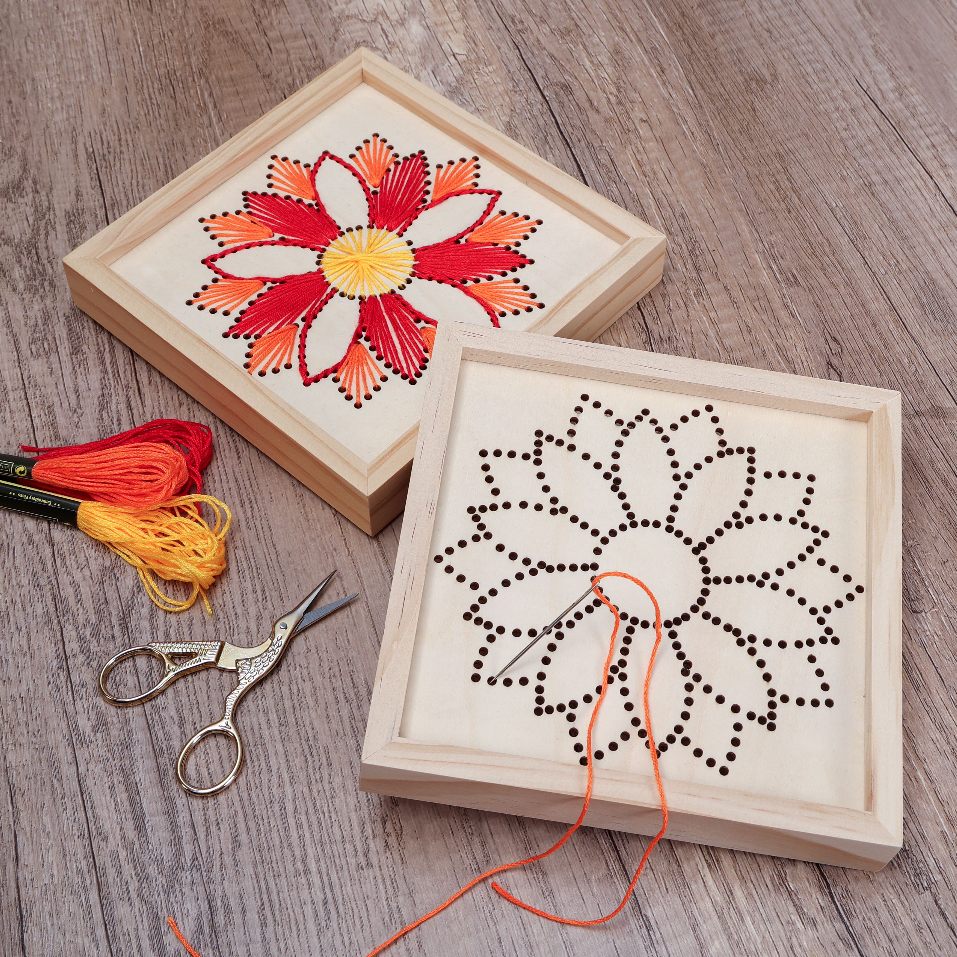 Kan du lide tekstilhåndværk? Måske har du allerede prøvet at brodere. Et broderi kan være så avanceret eller så enkelt, som du ønsker, og der er ingen rigtige eller forkerte måder at brodere på. For nemhedens skyld kan du bruge vores færdige sæt, som findes både til voksne og børn, eller skabe dit eget design ved hjælp af en væv og broderigarn. Kombiner broderi med maling med tekstilfarve eller prøv punch needle for hurtigt og nemt at skabe smukke værker.