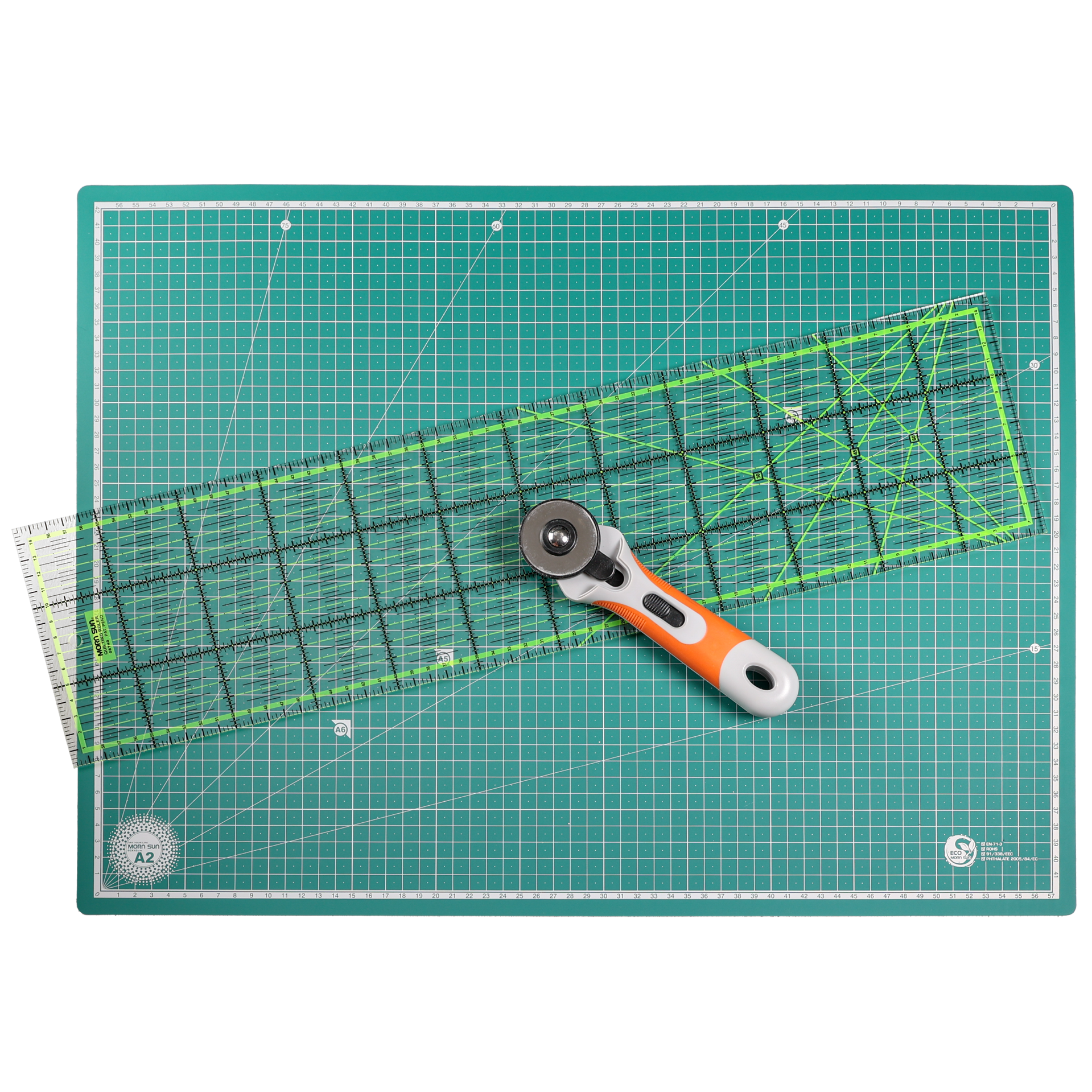 Sisältää viivaimen, leikkuumaton ja rullaveitsen.