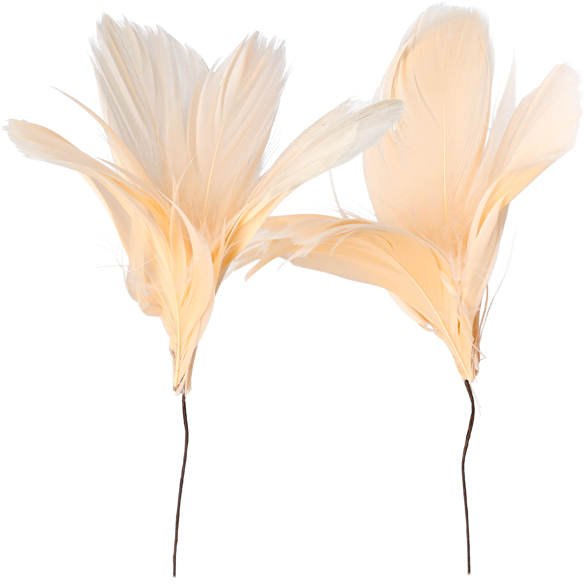 Koristeelliset höyhenet metallilangassa, täydelliset askarteluun, kukka-asetelmiin ja koristeluun. Jokaisessa höyhen-nipussa on noin 6 höyhentä kiinnitettynä yhteen lankaan. Höyhenten pituus on noin 9 cm ja metallilangan pituus 10 cm, mikä tekee niiden kiinnittämisestä helppoa eri asetelmiin. Saatavilla viidessä eri värissä ja myydään 2 kappaleen pakkauksessa.