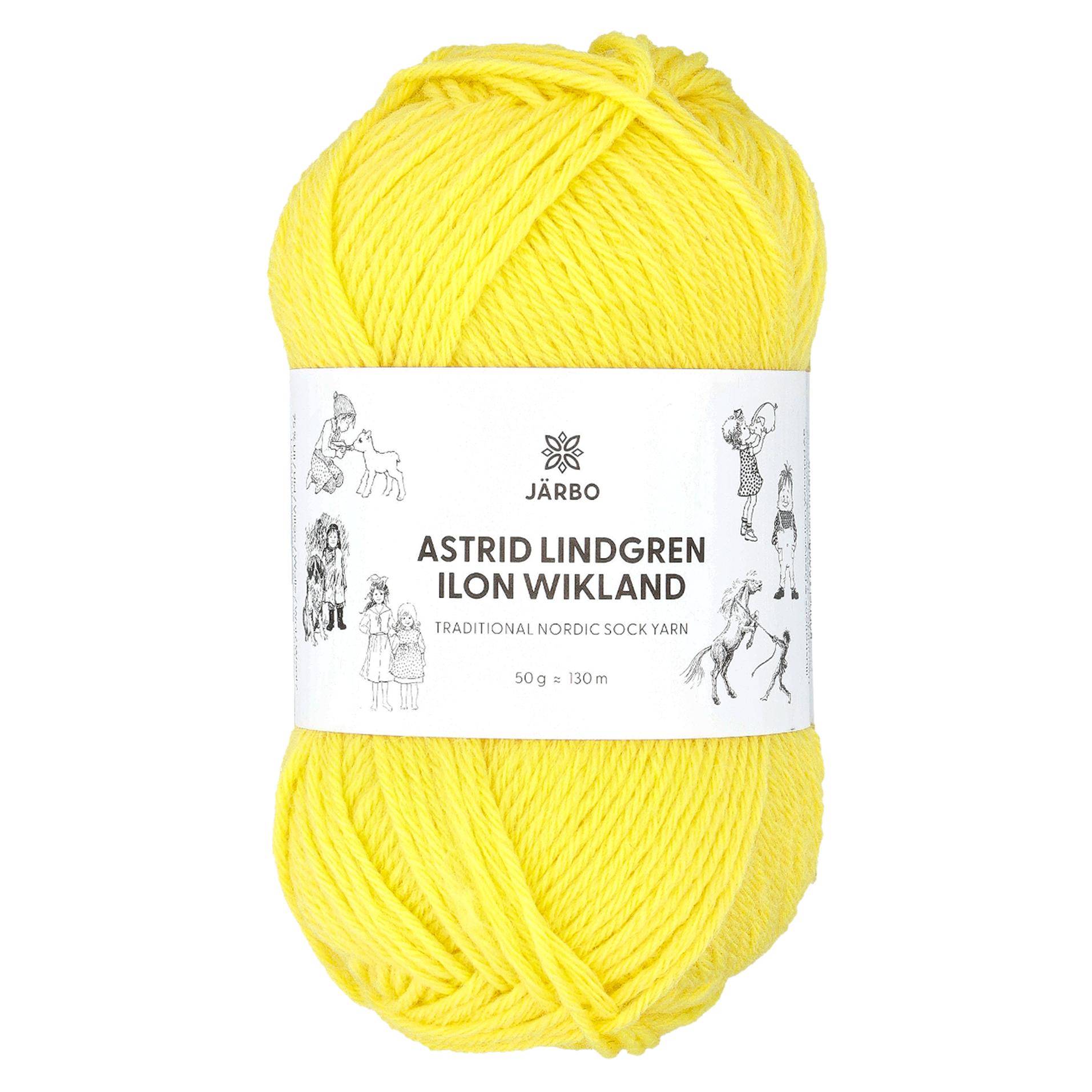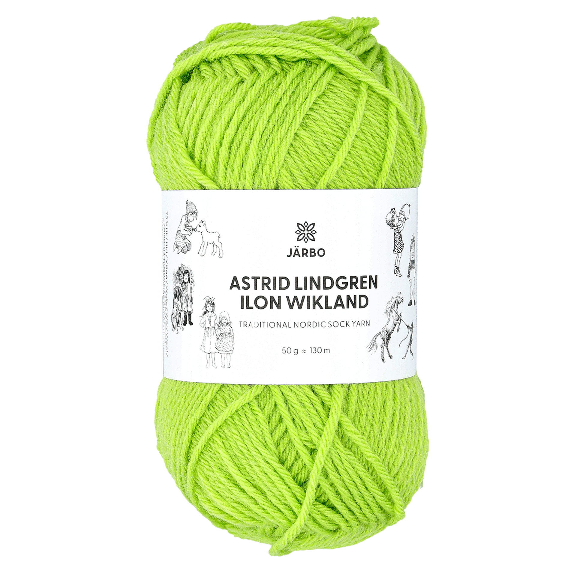 Järbo on luonut lankakokoelman, joka on saanut inspiraationsa Astrid Lindgrenin rakastetuista hahmoista ja Ilon Wiklandin kauniista kuvituksista. Tämä lanka on erityisen pehmeää sukkalankaa, mutta se sopii myös neulepuseroihin, neuletakkeihin ja moniin muihin projekteihin. Lanka on 75% villaa, 25% polyamidia. Suositeltavat puikot 4 mm. Silmukkatiehys n. 25 silmukkaa = 10 cm. konepesu 40°C, älä käytä huuhteluainetta.