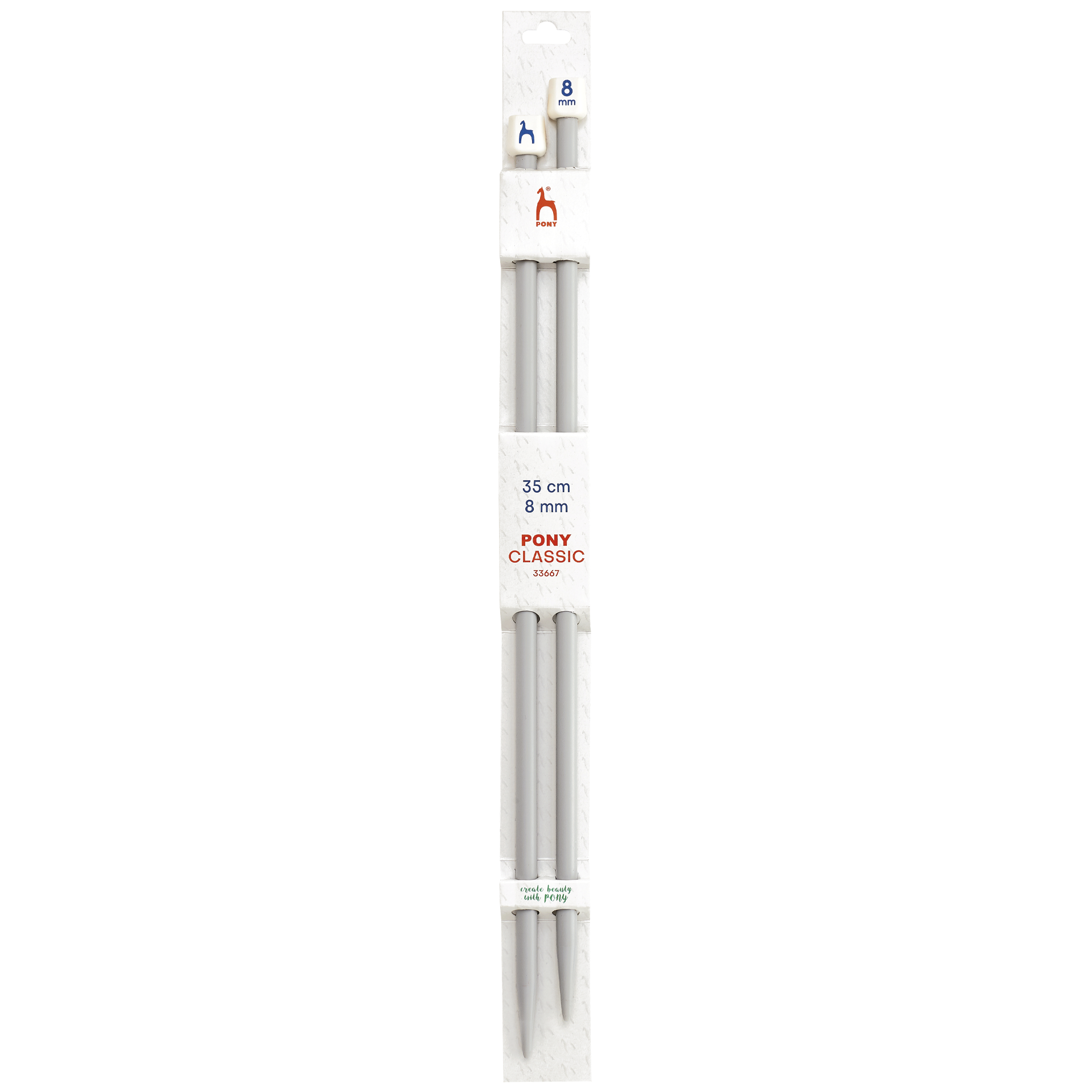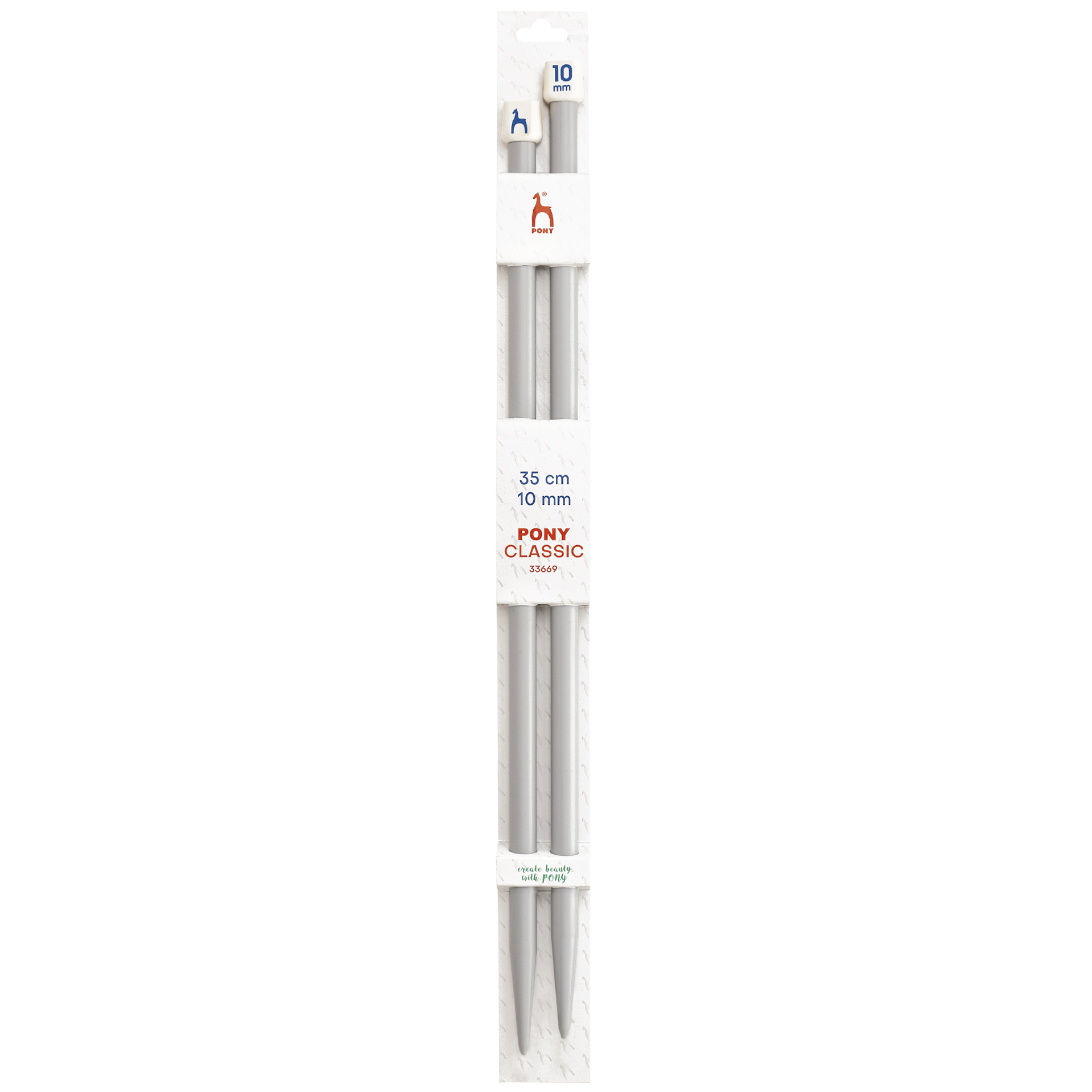 Pony suorat puikot, valmistettu muovista. Klassiset suorat puikot ovat lähes välttämättömät suurempiin neuleprojekteihin, kuten villatakkeihin ja puseroihin. Näillä puikoilla neulotaan edestakaisin, ja jokaisen kerroksen lopussa työ käännetään. Puikoissa on toisessa päässä muovinen nuppi, joka estää silmukoiden putoamisen. Puikkojen koko on selkeästi merkitty.