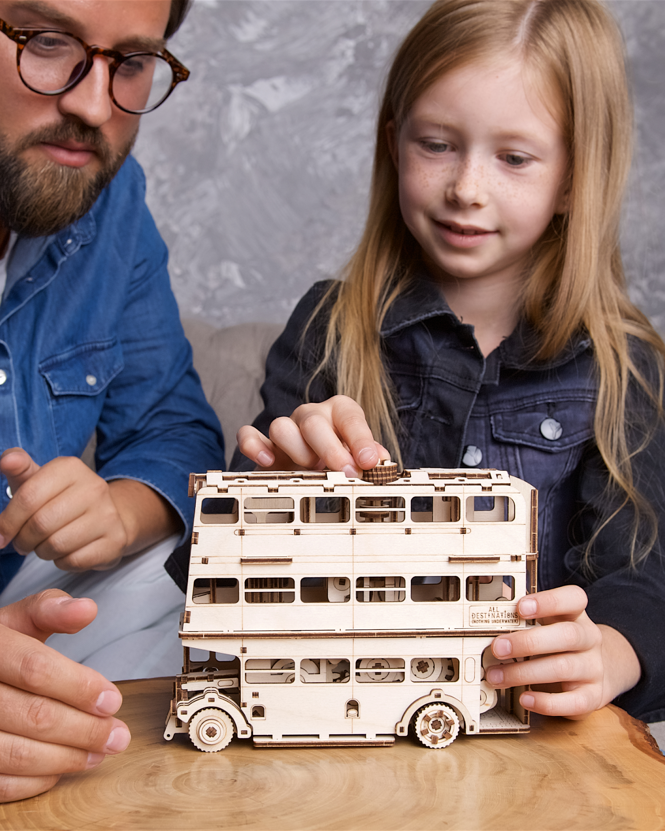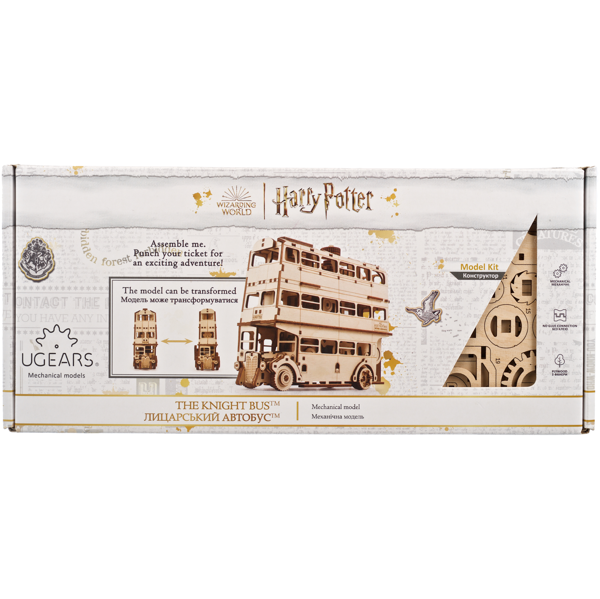 Magisk Harry Potter buss i trä med rörliga funktioner.