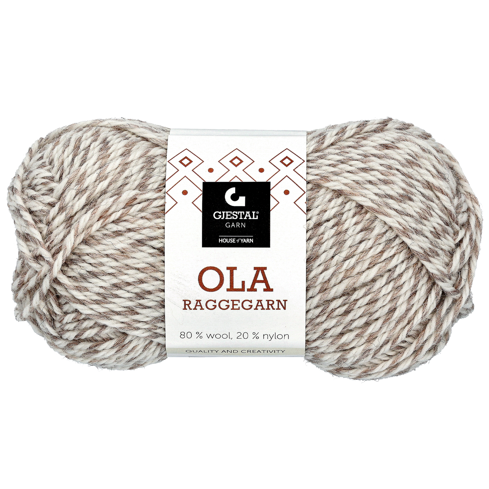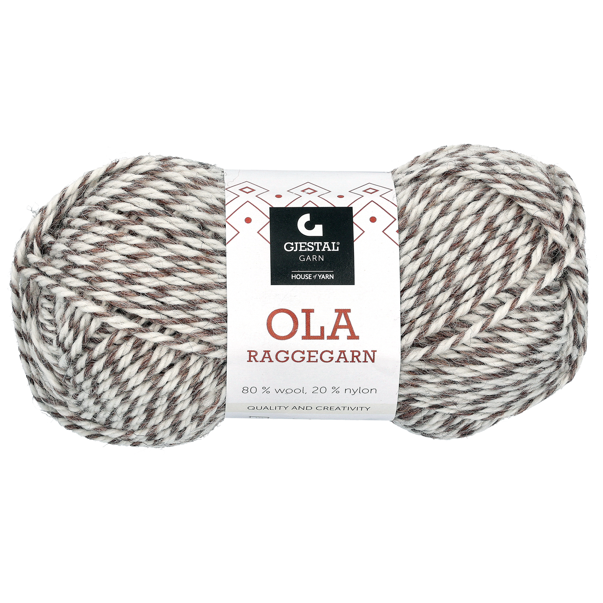 Ola Raggegarn är ett sockgarn från Gjestal av 80 % ull och 20 % nylon. Stickor nr 3,5-4. Masktäthet 22-23 maskor = 10 cm. Maskintvätt i ullprogram 40°C. Ca 100 m per nystan. Vikt 50 g/st. Till ett par sockar i stl 20-31 går det åt 100 gram, till storlek 32-42 går det åt 150 g, och till storlek 43-45 200 gram.