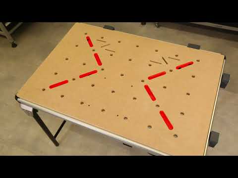 Arbetsbord Work 1600, det mobila arbetsbordet som du kan ta med och använda var du vill samt förvaras separat på en liten yta. Arbetsyta av slagtåligt MDF 1035x695 mm. Ram av aluminium och ben är av stål. Om underlaget är ojämnt kan höjden justeras med den ställbara foten, vilket gör att bänken står stadigt och säkert i alla lägen. Två stora och två små spännblock ingår, för kraftfull fixering av arbetsstycken med tvingar mot bordsprofilen, dessutom fungerar de som avläggningsyta när bänken är ihopfälld. För stationär användning av kap- och geringssågar eller borrstativ från wolfcraft, finns det passande fixeringsskåror och hål i arbetsbänken. Tål vikt upp till 120 kg. Med arbetsbordet medföljer: 4 spännklossar 4 spännbackar 1 insexnyckel Tvingar ingår ej.
